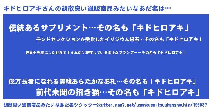 | ヘコむあだ名 | 『キドっちょ』『キドヒロアキ(笑)』 |