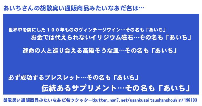 | 意味不明あだ名 | 『あいちフォーエバー』『ペロリンあいち』 |