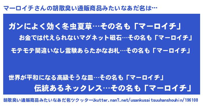 | 意味不明あだ名 | 『ペロリンマーロイチ』『自称マーロイチ』 |