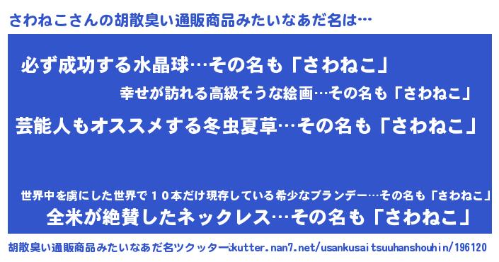 | 意味不明あだ名 | 『自称さわねこ』『ペロリンさわねこ』 |