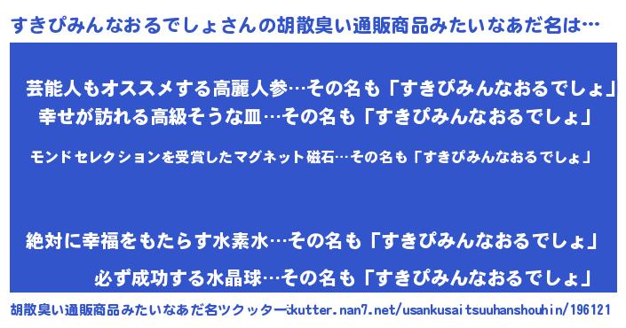 | 欧米人風あだ名 | 『ダニエルすきぴみんなおるでしょ』 |