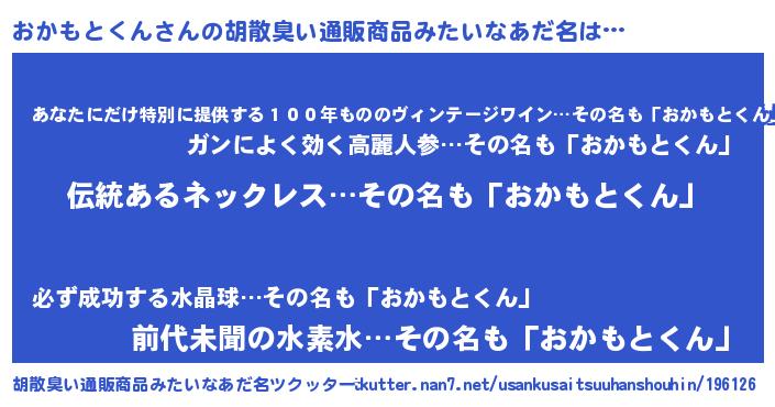 | 男性向けラノベタイトル風あだ名 | 『転生したらおかもとくんだった件』 |