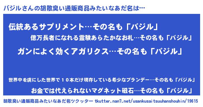 | 男性向けラノベタイトル風あだ名 | 『緋弾のバジル』『魔法科高校のバジル』 |