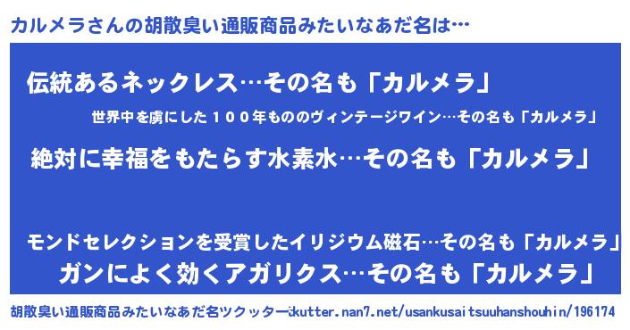 | ヘコむあだ名 | 『カルメラ(苦笑)』『カルを』 |