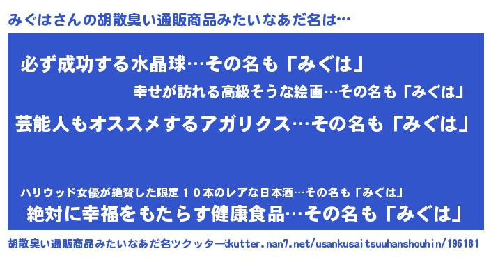 | 恥ずかしいあだ名 | 『ミグハデラックス』『プリティーみぐは』 |