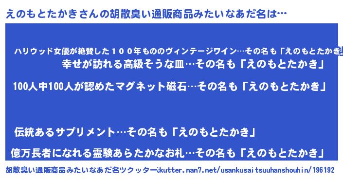 | 欧米人風あだ名 | 『アンジェラ・えのもとたかき』 |