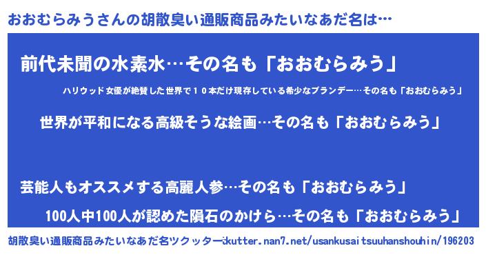 | 肩書あだ名 | 『おおむらみう総理大臣』 |