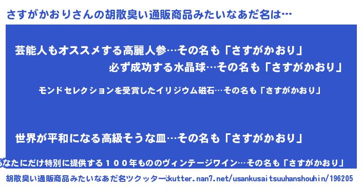 | 肩書あだ名 | 『さすがかおりディレクター』 |