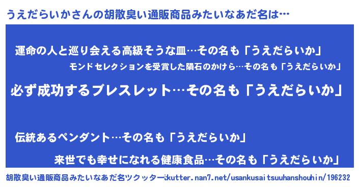 | 肩書あだ名 | 『うえだらいか中佐』『うえだらいか社長』 |