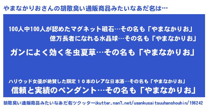 | 意味不明あだ名 | 『自称やまなかりお』 |