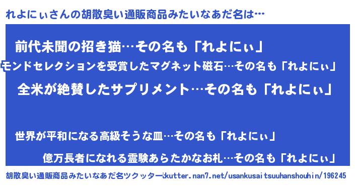 | ヘコむあだ名 | 『れよお』『れよにぃ(笑)』 |