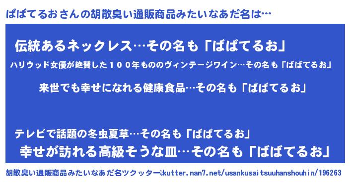 | 意味不明あだ名 | 『永久保存ばばてるお』『自称ばばてるお』 |