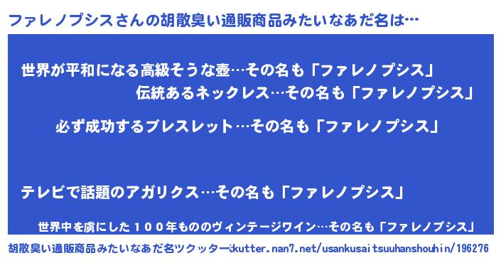 | 意味不明あだ名 | 『ペロリンファレノプシス』 |