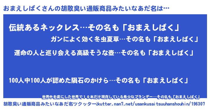| 欧米人風あだ名 | 『おまえしばくクリステル』 |