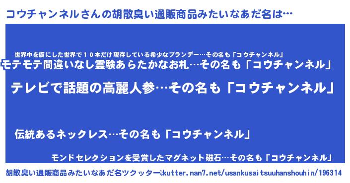 | 意味不明あだ名 | 『自称コウチャンネル』 |