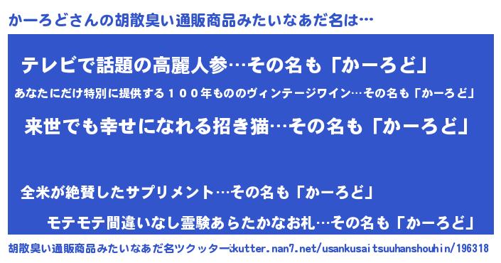 | ヘコむあだ名 | 『かーろど(笑)』『かーにー』 |