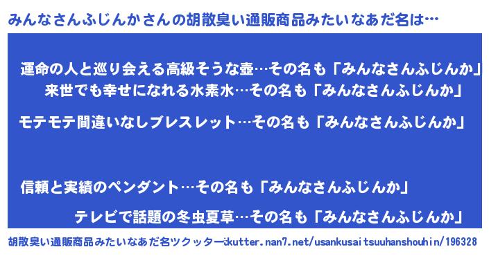 | ヒーロー風カッコイイあだ名 | 『スーパーミンナサンフジンカ』 |
