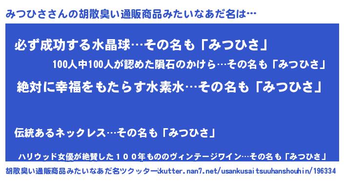 | ヘコむあだ名 | 『みつひさ(震え声)』『みつにー』 |