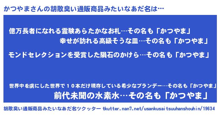 | ヘコむあだ名 | 『かつっふぃ~』『かつやま(震え声)』 |