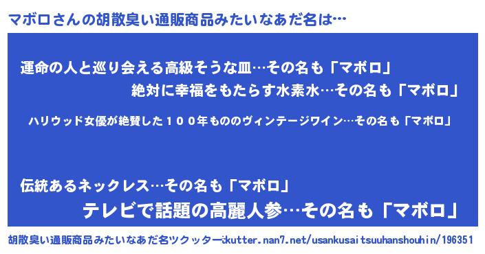 | 恥ずかしいあだ名 | 『マボっちょ』『マボロデラックス』 |