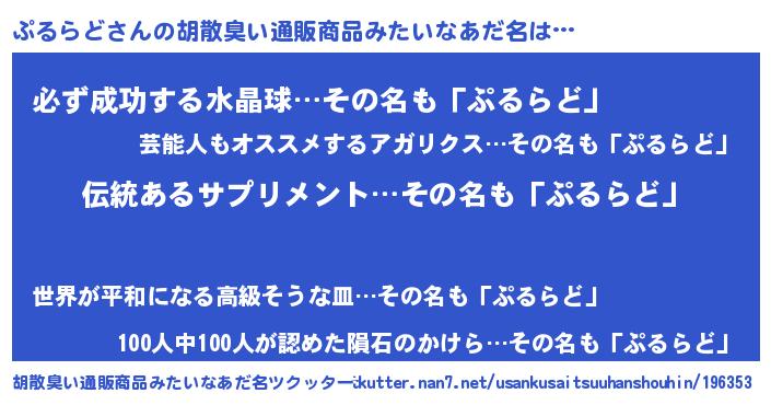 | 意味不明あだ名 | 『とにかく怪しいぷるらど』 |