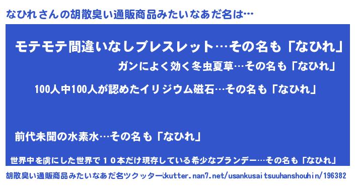 | 恥ずかしいあだ名 | 『ボンバーヘッドなひ』『なひちん』 |