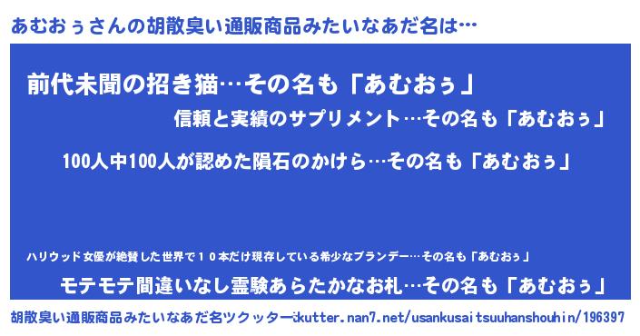 | ヒーロー風カッコイイあだ名 | 『正義の使者あむおぅ』『ネオアムオゥ』 |