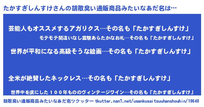 | 意味不明あだ名 | 『たかすぎしんすけフォーエバー』 |