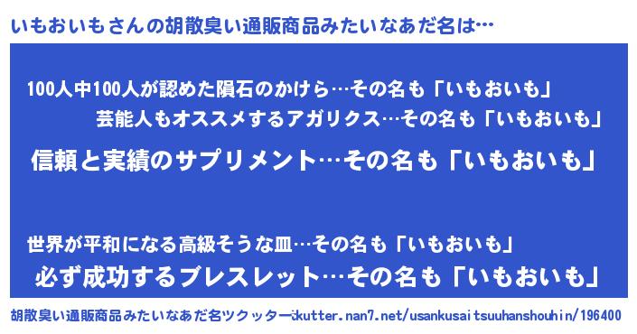 | 意味不明あだ名 | 『とにかく怪しいいもおいも』 |