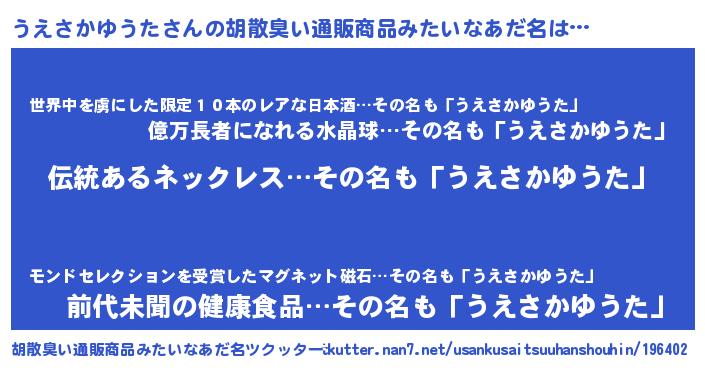 | ヘコむあだ名 | 『うえ太郎』『うえさかゆうた(爆)』 |