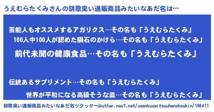 | 意味不明あだ名 | 『永久保存うえむらたくみ』 |