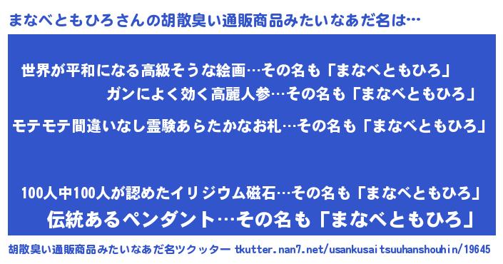 | 肩書あだ名 | 『まなべともひろ御曹司』 |