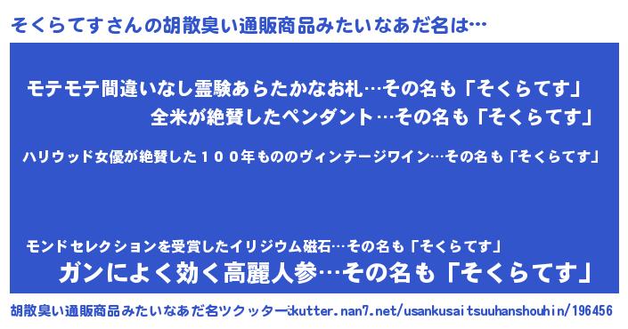 | 意味不明あだ名 | 『住所不定無職そくらてす(8歳)』 |