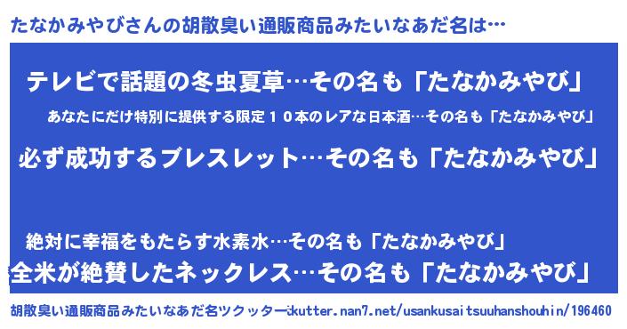 | 肩書あだ名 | 『たなかみやびCEO』『たなかみやび総統』 |