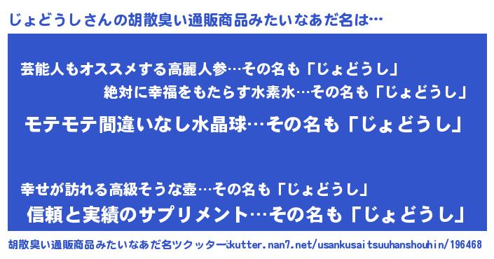 | ヘコむあだ名 | 『じょもー』『じょを』『牛乳』 |