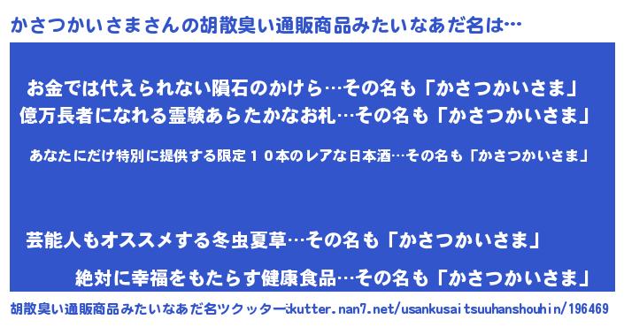 | ヘコむあだ名 | 『かさつかいさま(爆)』『かさっふぃ~』 |