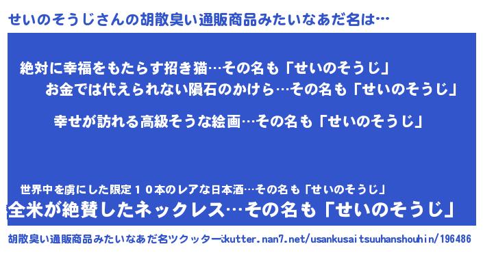 | 女子向けラノベタイトル風あだ名 | 『せいのそうじの雑貨屋さん』 |
