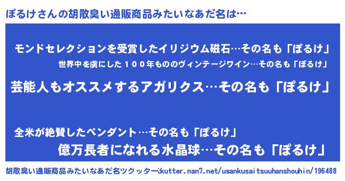 | 意味不明あだ名 | 『自称ぽるけ』『眠気覚ましガムぽるけ味』 |