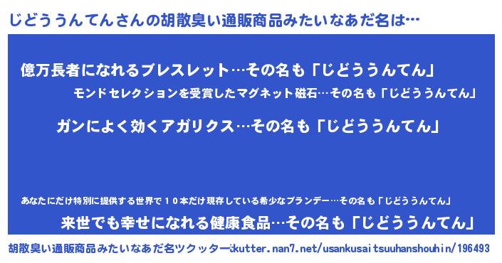 | 意味不明あだ名 | 『自称じどううんてん』 |