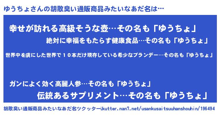 | ヘコむあだ名 | 『豆乳』『ゆう太郎』『ゆうちょ(笑)』 |