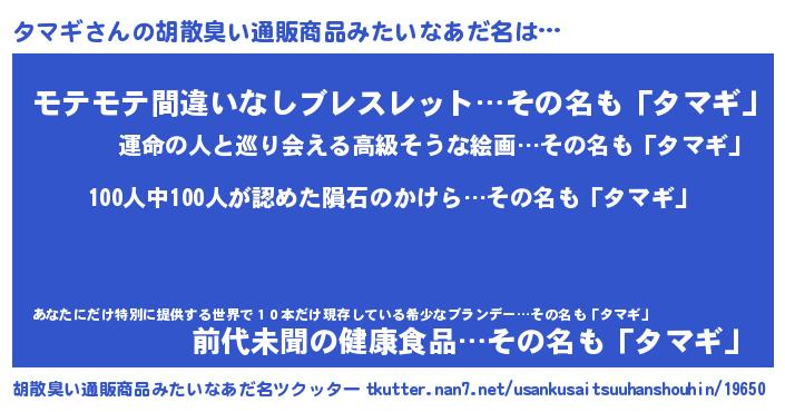 | ヘコむあだ名 | 『タマっふぃ~』『タマギ(苦笑)』 |