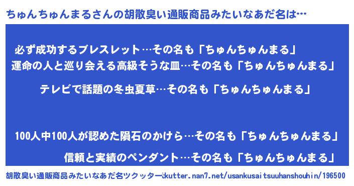 | ヒーロー風カッコイイあだ名 | 『サイバー戦士チュンチュンマル』 |