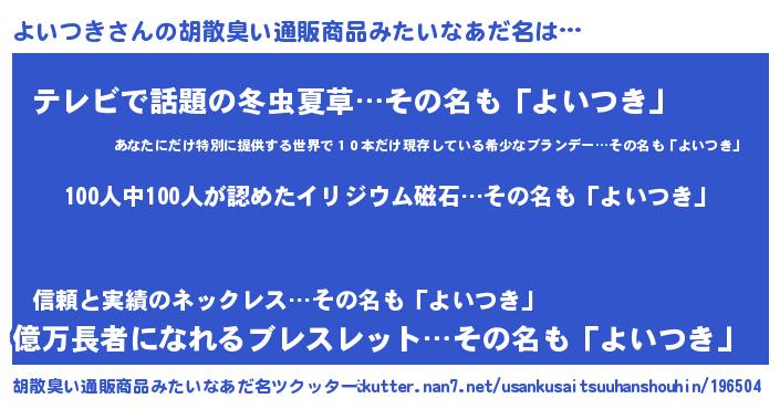 | 欧米人風あだ名 | 『ダニエルよいつき』『マイケルよいつき』 |