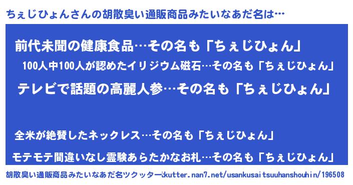 ちぇじひょんさんの胡散臭い通販商品みたいなあだ名をツクッター!