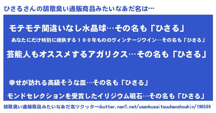 | 意味不明あだ名 | 『自称ひさる』『ペロリンひさる』 |