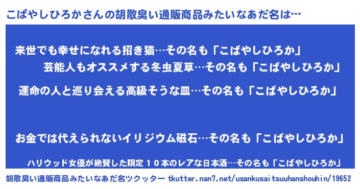 | 意味不明あだ名 | 『こばやしひろかフォーエバー』 |