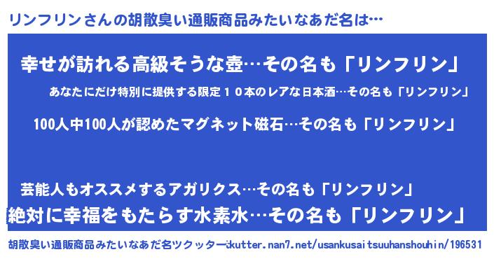 | 男性向けラノベタイトル風あだ名 | 『リンフリンスレイヤー』 |