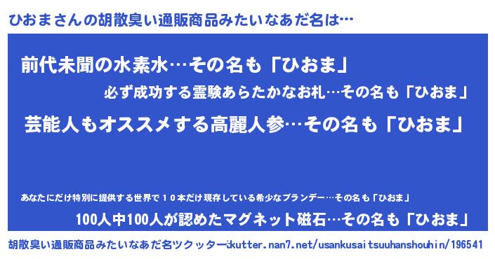 | 意味不明あだ名 | 『自称ひおま』『永久保存ひおま』 |