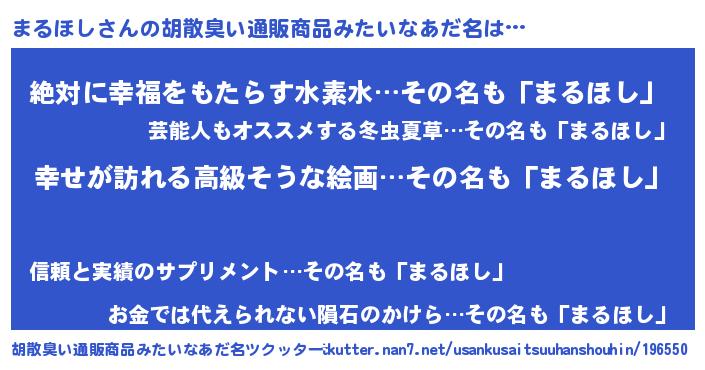 | 女子向けラノベタイトル風あだ名 | 『まるほしの雑貨屋さん』『闇のまるほし』 |