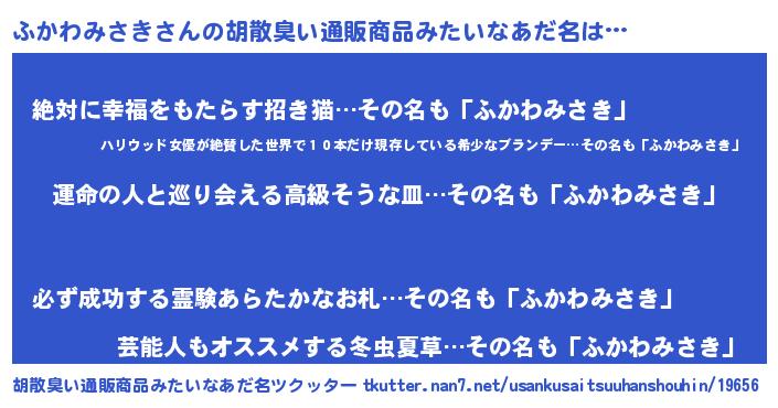 | 意味不明あだ名 | 『ふかわみさきフォーエバー』 |